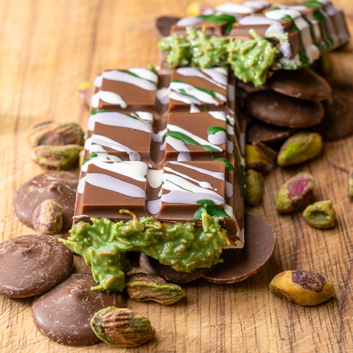 This is the bar that started it all—our signature blend of smooth chocolate, delicate kataifi (Middle Eastern pastry shreds), and luscious pistachio cream. It’s the ultimate indulgence that embodies the essence of Dubai-style confectionery.